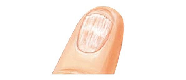 因老化或營養不良所引起,指甲表面有一條條的棱線紋路(直向或橫向都算),且不平整,摸起來凹凸不平。