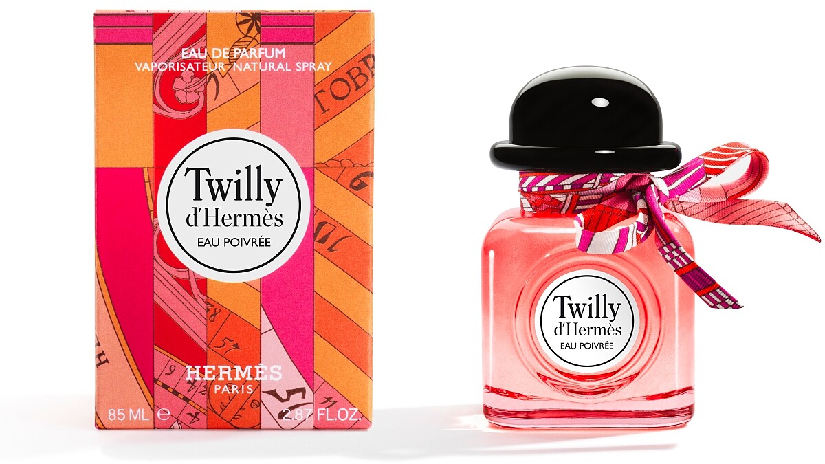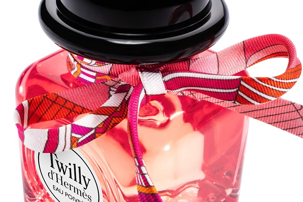 香水瓶瓶頸上同樣繫着一條嶄新的Twilly絲帶,展現調皮的扭轉變化,呼應愛馬仕的特色。