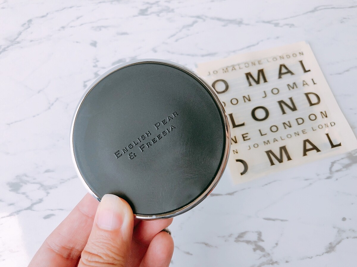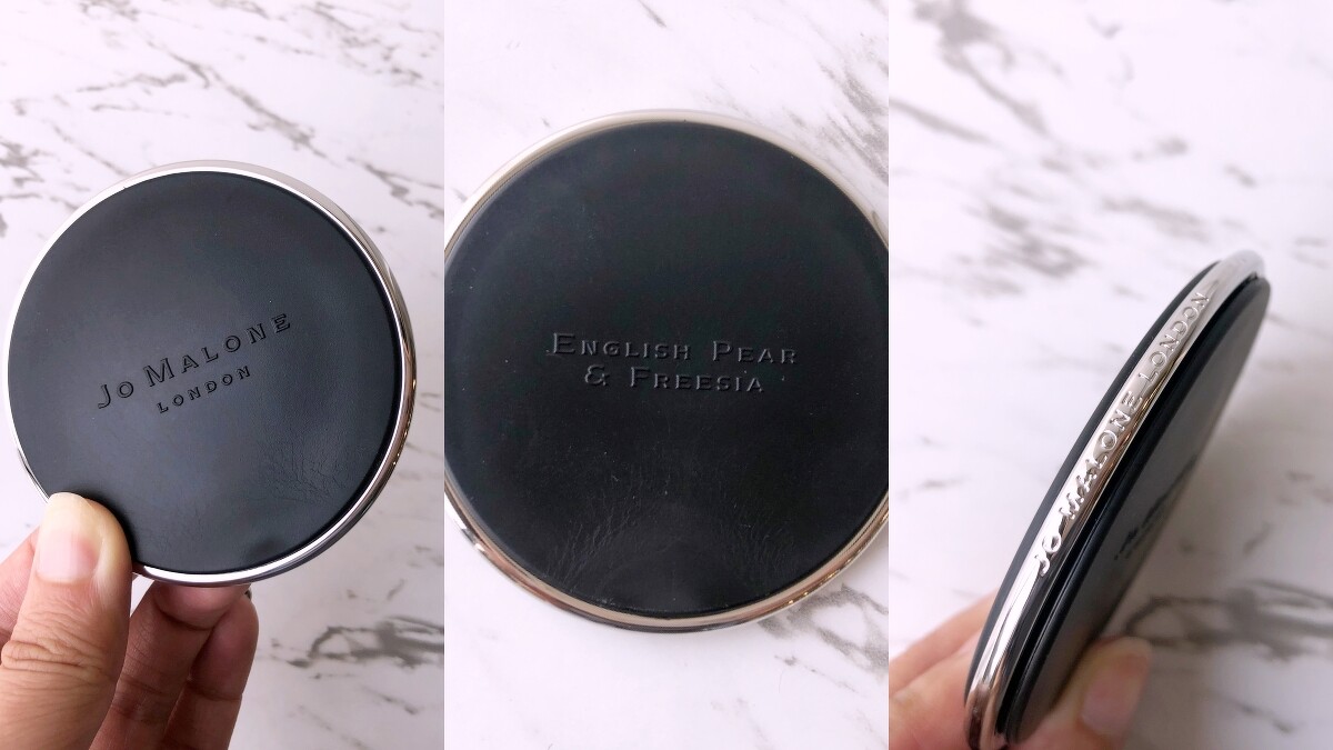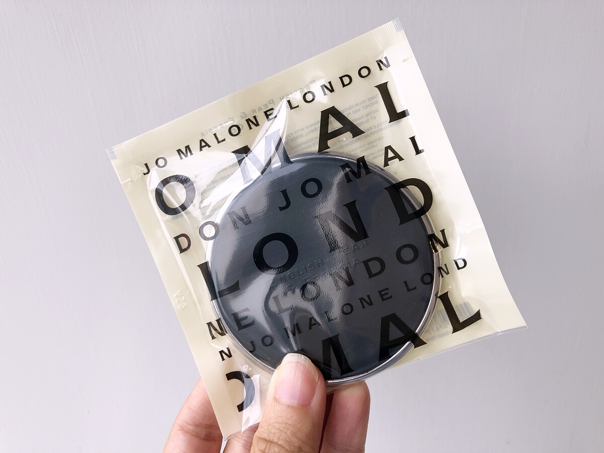 霧面黑色的小圓盤正面有Jo Malone London Logo,背面則是所屬香氣的英文名字浮雕,展現精巧香氛工藝。