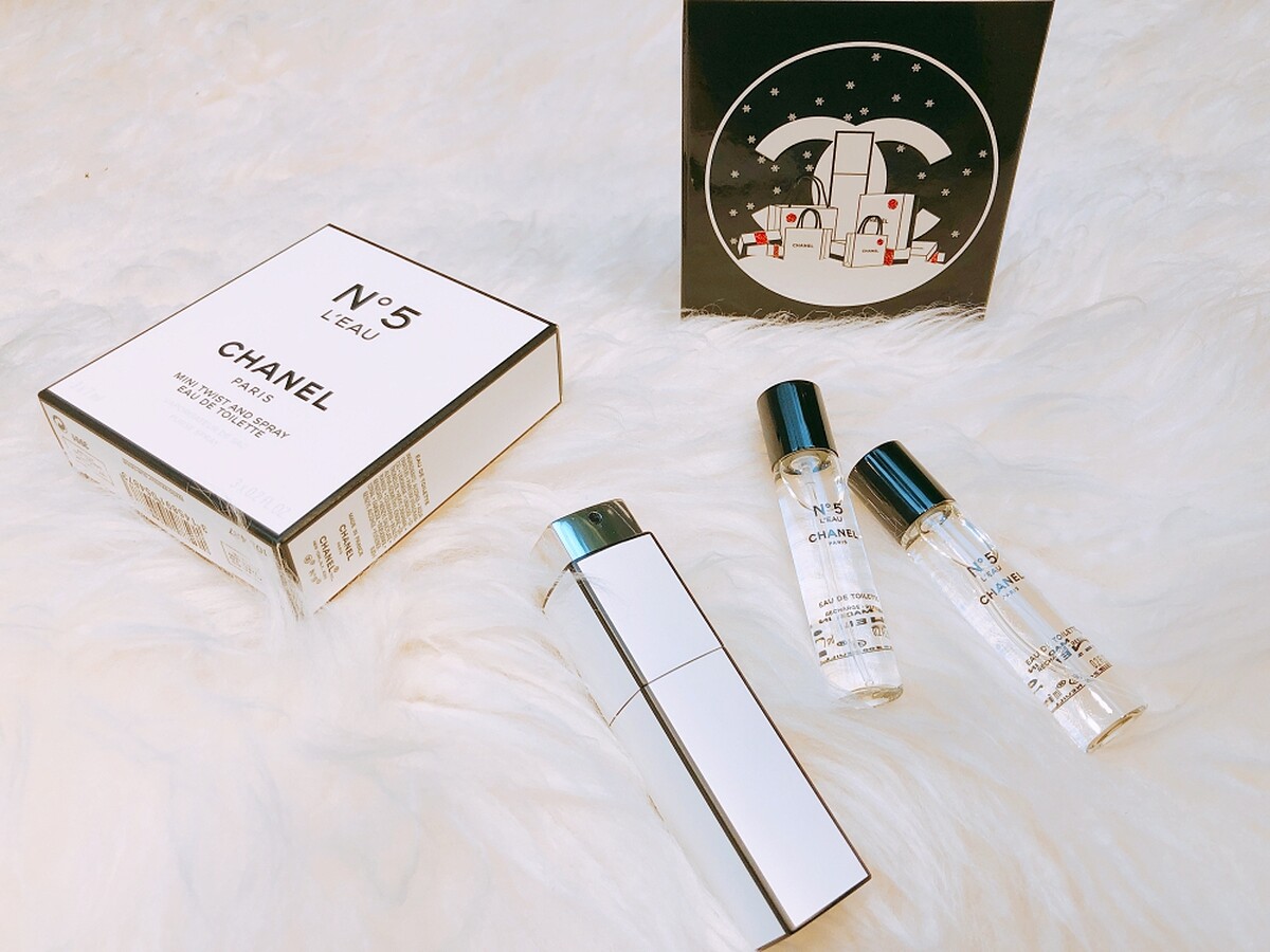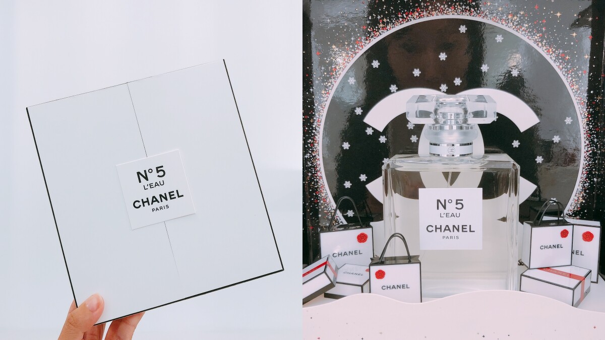 精巧香水一共推出2款:香奈兒N°5 IT 精巧香水瓶身上點綴黑色與金色飾邊,香奈兒 N°5 L'EAU IT 精巧香水則是白色與黑色飾邊。兩款隨身香水都以聖誕禮盒包裝,隨附兩支香水補充瓶。