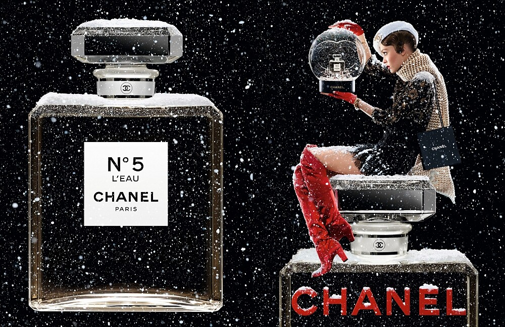 廣告中,身穿小洋裝、戴著露指手套、腳踩紅靴、頭戴白色貝雷帽並搭配 1940 年代的捲髮造型的莉莉蘿絲‧戴普,散發著清新自然的青春魅力。她坐在巨大的香水瓶上,凝視著大型水晶球,彷彿預言未來的占卜師。「我看見了,我看見了…」她在禮物堆中發掘了她的幸運號碼 N°5 以及最鍾愛的香奈兒N°5 L'EAU清新晨露香水。接著隨著雪花飄揚恣意起舞,場景轉換為百老匯音樂劇,她盡情揮灑年輕女性的現代氣質,舉手投足間活力四射。專為廣告訂製的三米高香水瓶、背景配上巨型的雙 C 圖騰,襯托出奇幻元素。