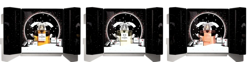節慶香氛珠寶盒一共有3款:香奈兒 N°5節慶香氛珠寶盒、香奈兒 N°5 L'EAU節慶香氛珠寶盒、香奈兒摩登 COCO 節慶香氛珠寶盒。