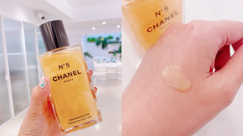 迷人的玻璃瓶身內,流動著金色亮粉。不僅讓身體沉浸在香奈兒最經典的香氣中,還能賦予肌膚閃亮金色薄紗。