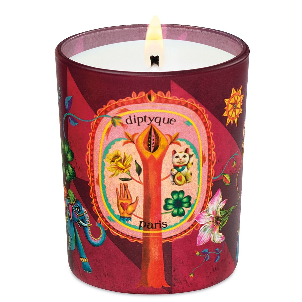 旋轉燭罩上的5個鍍金吊墜,集合世界各地傳說中代表轉運的幸運物,輕輕撥動便可改變厄運、帶來好運,伴隨大家度過無數幸福時刻。今年一樣有分成190g蠟燭適用的大款及70g小款蠟燭適用的兩種尺寸。