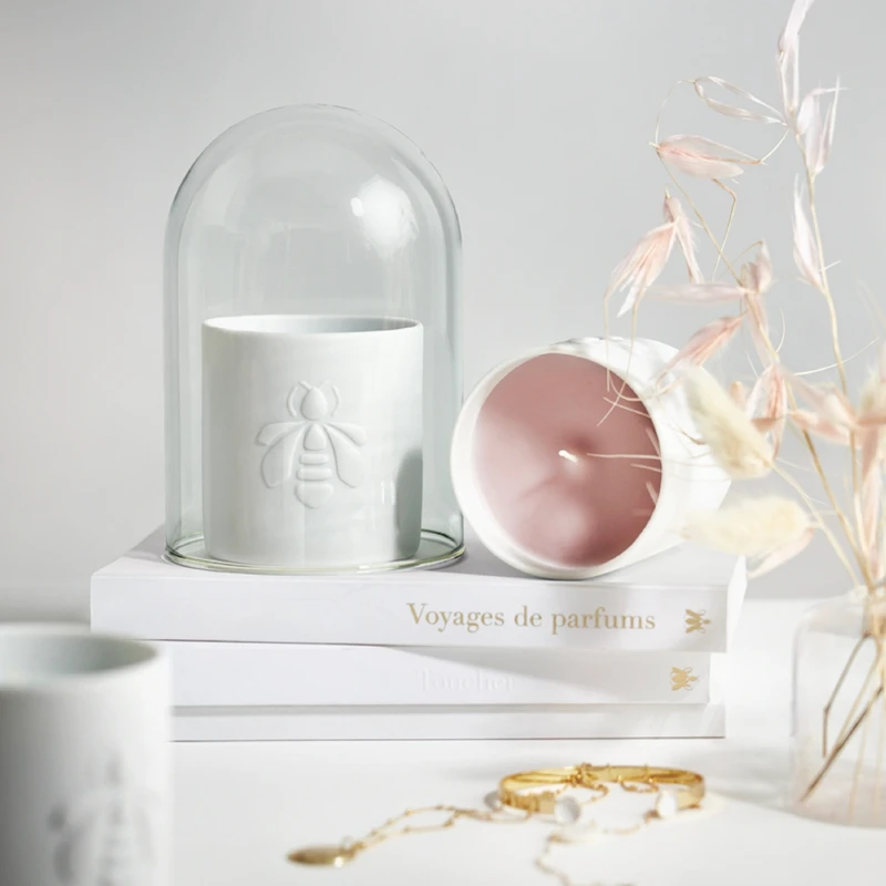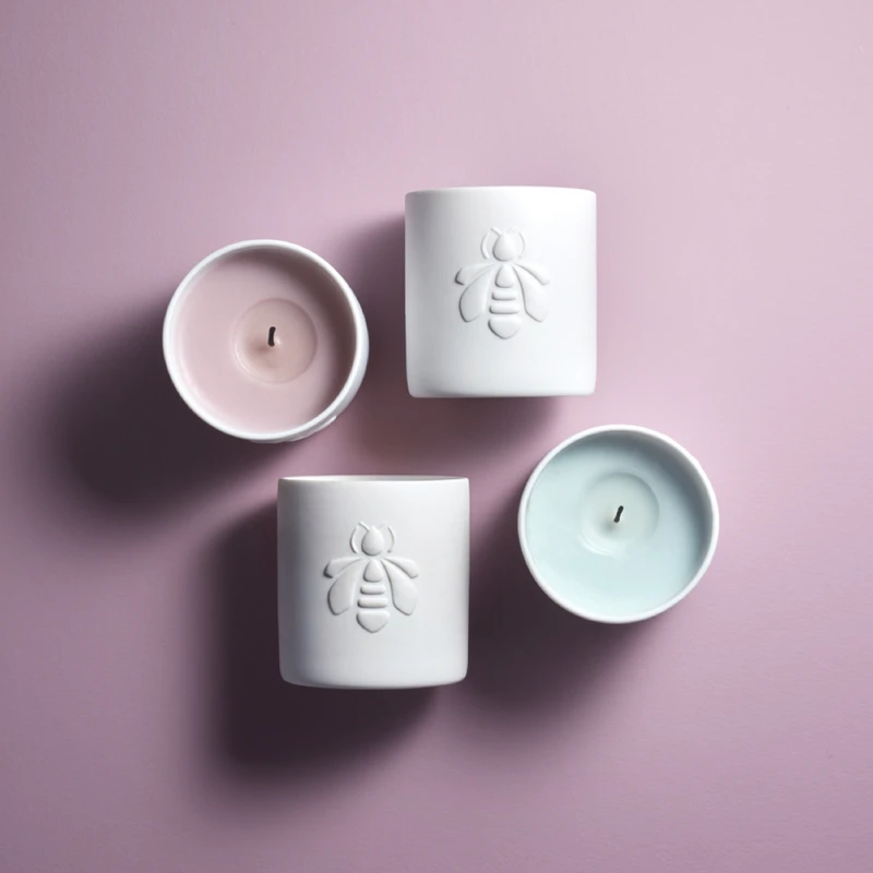 盛裝蠟燭的白Artoria製餅乾瓷罐,宛如冬日白雪般無暇,更顯香氛的純淨芳醇。以白色素燒瓷製成的容器上,裝飾著蜜蜂浮雕設計,展現嬌蘭百年香氛世家的風格,而燃燒時,透著火光的蠟燭,就是冬日最美麗的畫面。