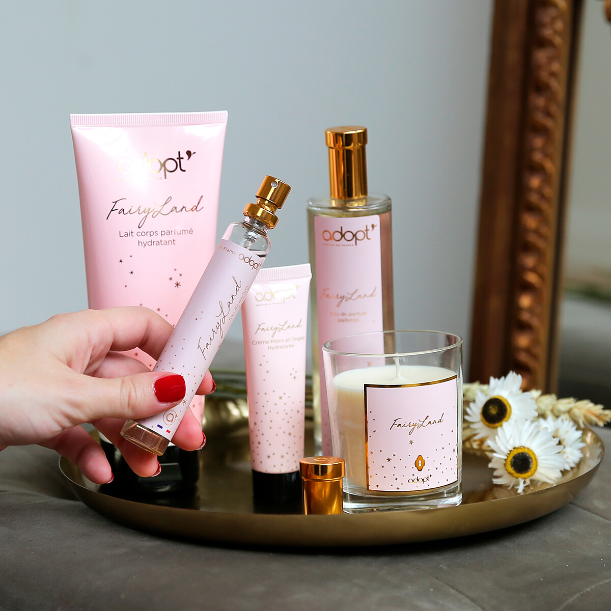 法國adopt’聖誕節限量香水推出「幻想奇境/曠野之息」兩組對香,以「奇幻童話」為主題,粉色森林奇境之中,充滿好奇心的彼得潘與小仙子飛翔穿梭在其中,夜空中閃耀著無數的金色璀璨星斗與精靈粉塵,空氣中陣陣飄來幸福香氣。