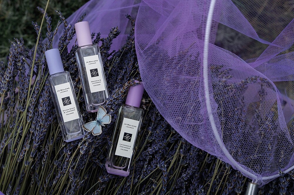 系列中一共有三款,由三位調香師以不同視角重新詮釋具有Jo Malone London風格的薰衣草香調,分別為:Wisteria & Lavender Cologne(紫藤和薰衣草)、Silver Birch & Lavender Cologne(白樺樹和薰衣草)、Lavender & Coriander Cologne(薰衣草與芫荽)。深淺不同的粉紫色霧面瓶蓋包裝,搭配延伸至透明瓶底的紫色拼接設計,為整體視覺與嗅覺帶來浪漫氣息,彷彿置身英國鄉間的春日薰衣草園,輕盈明亮、療癒舒壓。