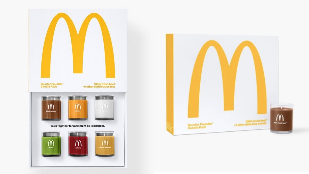 麥當勞2020年推出可能是史上最有創意的「四盎司牛肉堡香氛蠟燭禮盒」(Quarter Pounder Scented Candle Pack),裡面一共有6顆蠟燭,分別是漢堡麵皮、起司、100%牛肉、洋蔥、醃黃瓜、番茄醬的味道。除了單顆點燃之外,如果6 顆同時燃燒,儼然就組成了美味的漢堡味,這也是麥當勞最推薦的點法!