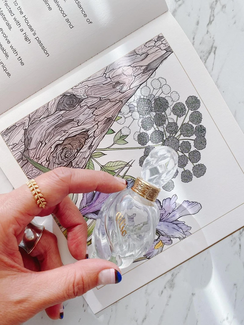 復刻的沾式經典瓶身則是由義大利Venini玻璃製造後,再手工修整,圓潤立體螺旋細膩雕刻彷彿女性衣裙縐褶,展現女性優雅之美;調香師則是Sophie Labbe。開啟香水瓶身,一股柔軟細緻的香氣立刻吸引我,是一款明亮優雅又年輕的粉嫩氣息,粉嫩感來自義大利珍貴的鳶尾花根,跳脫我的想像,這鳶尾花脫俗又輕盈,洋溢著清新的綠色氛圍,沒有預設的復古感,原來前味加入了跟麝香相似的歐白芷;中味的茉莉與帶著奶香的檀木增添香氣的綿密柔滑,香根草與廣藿香的後味烘托出細緻的尾韻,和諧優雅,象徵著高貴與品味。
