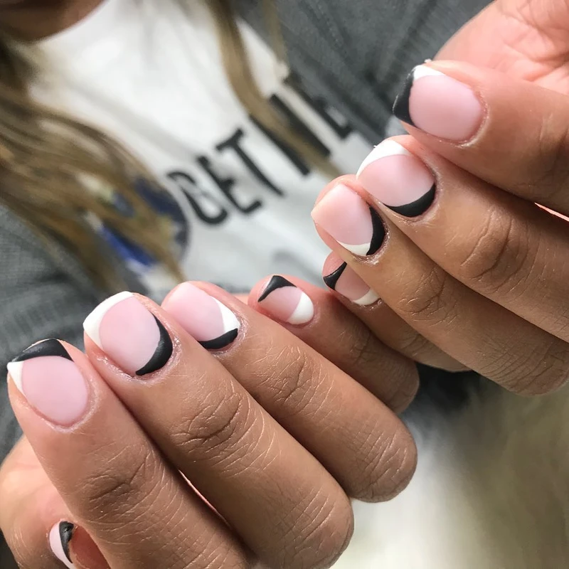 最經典的「法式指甲」,就是以透明或裸粉系的底色,搭配指尖最前方的純白線條。但有別於以往簡單清新的風格,今夏再度回歸的法式美甲,雖然保留淡裸色基底,但在花樣上跳脫以往的框架,以極細的弧線、不規則線條變化出的極簡法式,看起來更多了點生動活潑,是人人皆可駕馭的款式。