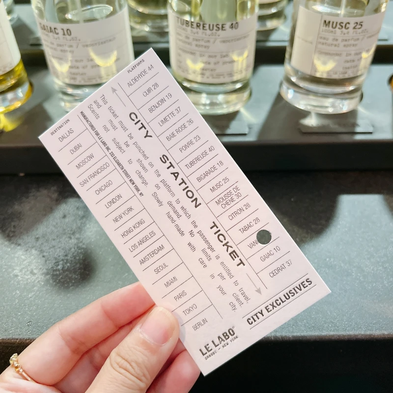 LE LABO城市限定系列香雖然2022年沒有推出新味道,不過卻有限定小卡做成車票的樣子。只要購買該城市香水,就會在上頭打個洞,很有「到此一遊」的感覺。