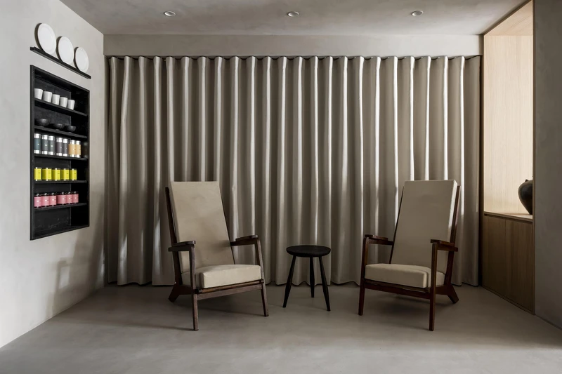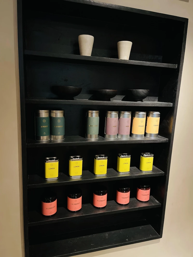 Lyn Harris認為探索香氛的過程是緩慢舒適、不容被催促的。因此Perfumer H松 菸店特別邀請英國木造工匠Bobby Mills為台灣打造專屬的香氛座位區,讓消費者能舒適入座,一邊品茶、一邊挑選鍾愛的香氛。這個空間更設置食品區販售英式食物,像是覆盆子果醬與檸檬風味橄欖油,從每一個細節讓客人體驗Lyn Harris最愛的生活美學。