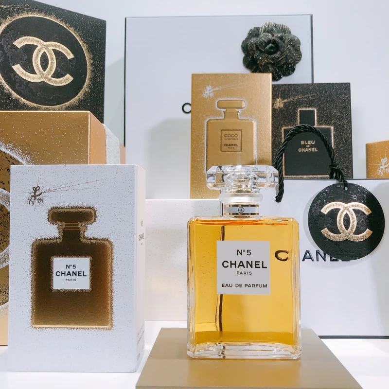 今年香奈兒聖誕節香氛主角以最經典的香氛N°5為主,像期間購買N°5香水就可以獲得特製封套,金X白的配色十分有質感。