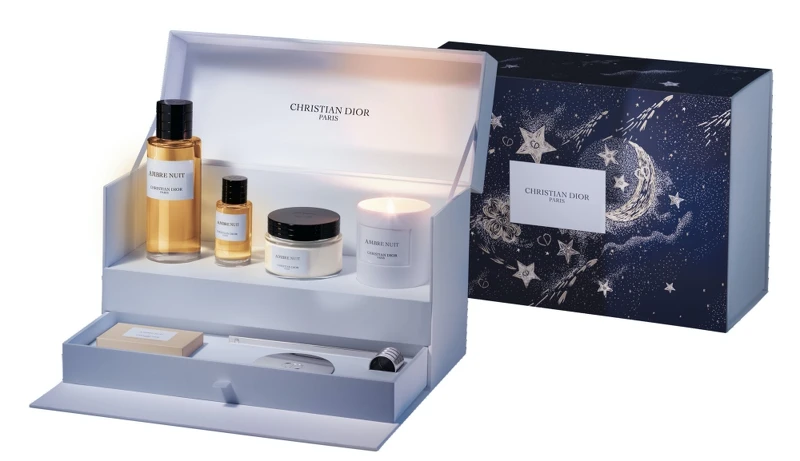 迪奧香氛世家特別推出「MAISON CHRISTIAN DIOR迪奧香氛世家-2020聖誕限定奢華香氛組」,內容有250ml香氛、40ml香氛、潤膚乳霜、香氛皂,香氛蠟燭與防煙滅燭罩和蠟燭保護蓋共7樣香氛選品,展現迪奧香氛世家獨有的用香儀式。有兩款味道可選,分別為幸運時刻、夜之琥珀。