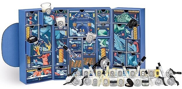 之前已搶先在10月中旬登場的聖誕倒數月曆,今年除了正貨聖誕蠟燭-午夜冷杉香氛蠟燭70g,其餘還有:杜桑香膏3.6g、3個10ml淡香水 (杜桑、感官之水、希臘無花果 )、4個10ml淡香精(花都之水、青蕨、肌膚之華、譚道)、11個35g迷你蠟燭(晚香玉、無花果、榛樹、琥珀、含羞草、麝香、炭木香、清水百合、漿果香、玫瑰、清雅水煙)、3個身體保養(影中之水沐浴油15ml、豐潤身體乳 15ml、石榴潤澤去角質霜15ml)、兩組三件裝聖誕裝飾。