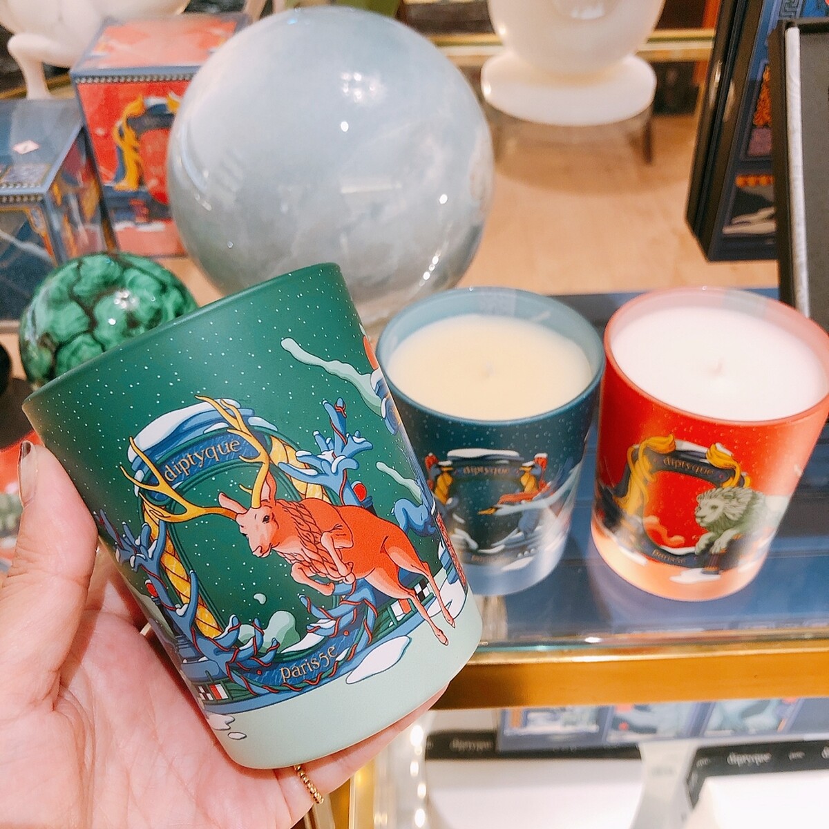 今年找來藝術家Ugo Gattoni合作。故事是從聖誕夜裡的一隻小貓開始,牠出現在在聖日爾曼大道34號diptyque精品店前,接著漫步走向廣場,那裡有座古老噴泉,莊嚴的動物石像環繞四周,彷彿蟄伏千年。貓兒頑皮地伸出雙爪於水中輕探,突然不可思議的事發生了,平靜的水面泛起了漣漪、噴泉處發出呢喃細語,動物們一隻接著一隻醒來了,包括威武剛強的雄獅、神秘優雅的天鵝、活潑忠誠的雄鹿,也就是這次奇幻靈獸聖誕系列的三個主角。