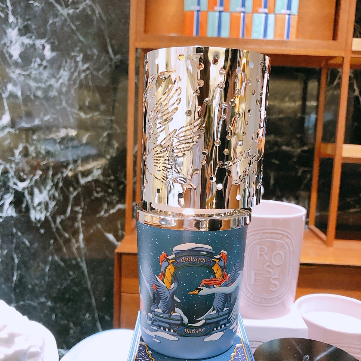 藍色蠟燭搭配天鵝圖案。柑橘香調與暖香氣息,明媚橙香輔以肉桂與生薑氣味,令整體氛圍搖曳生姿,親切可人的琥珀香調更增添一絲柔情蜜意。