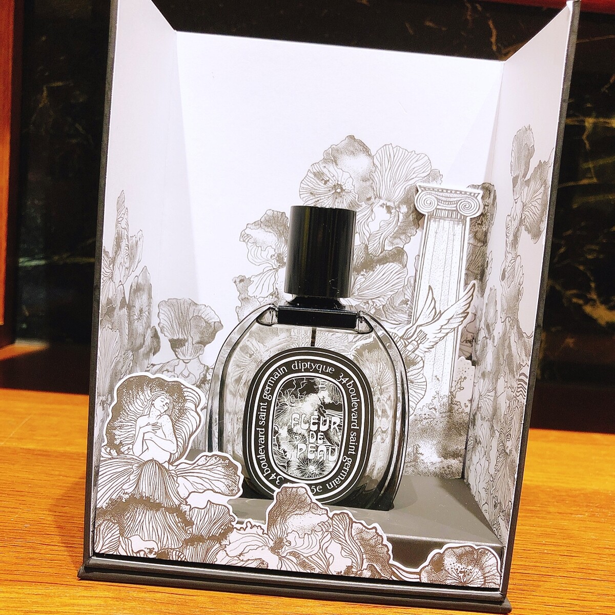 diptyque高人氣的杜桑、肌膚之華、花都之水推出專屬禮盒,內裝的立體圖案,兼具視覺與嗅覺雙重享受。