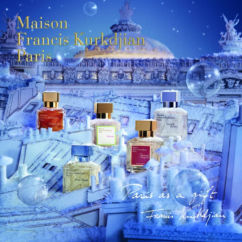 MFK今年將巴黎作為禮物禮物獻給所有喜歡香氛的大家,將香氛幻化為聖誕樹下的禮物、泡泡化身為一個個香水瓶,打開一扇向童話世界敞開的大門,通往了一系列香氛的寶藏,也將帶來一段令人難忘的旅程。