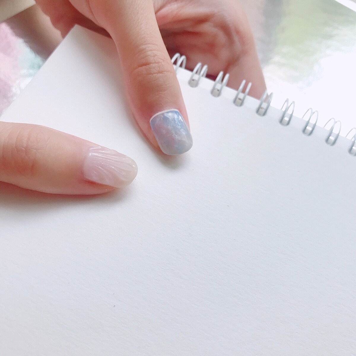 絕對是夢幻系女孩首選!藍色系的雲朵暈染,畫龍點睛的加上指緣的邊框,是最近日韓的美甲潮流。也可以選擇全框或法式細微笑線,讓指尖更有戲。