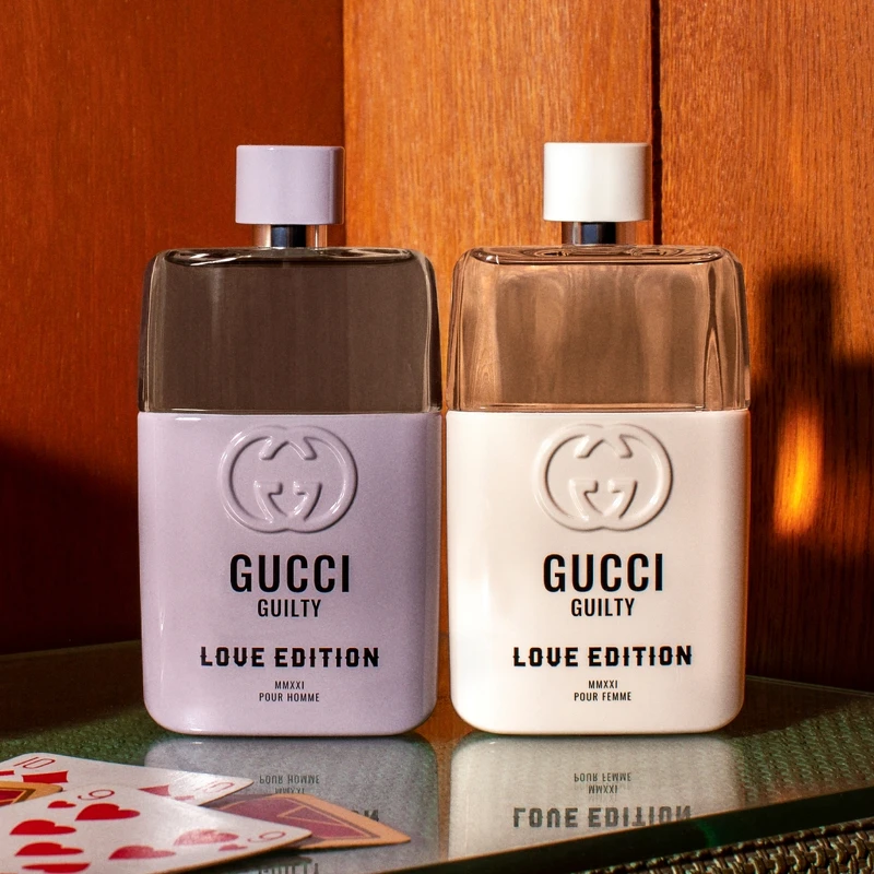 繼2020年推出限量罪愛密戀限量男女對香之後, GUCCI今年再推「罪愛迷戀男女對香GUCCI GUILTY LOVE EDITION」,代表現代激情的愛情宣言,向世界各地不受社會規則和定義束縛的戀人獻上致意。女香瓶身刻上「我們不在一起,但我們應該在一起」、男香瓶身則有「我們應該在一起,但是我們不在一起」的浪漫宣言。