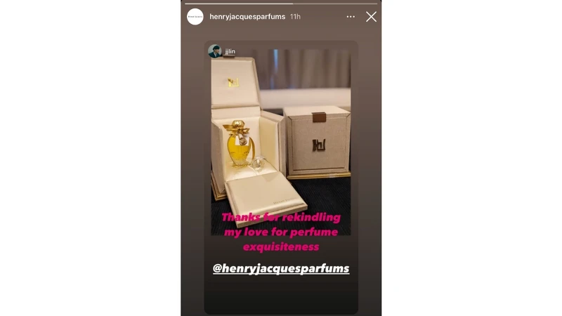 ↑日前JJ林俊傑的IG限時動態中發出在Henry Jacques亨利·雅克訂製的個人香水。