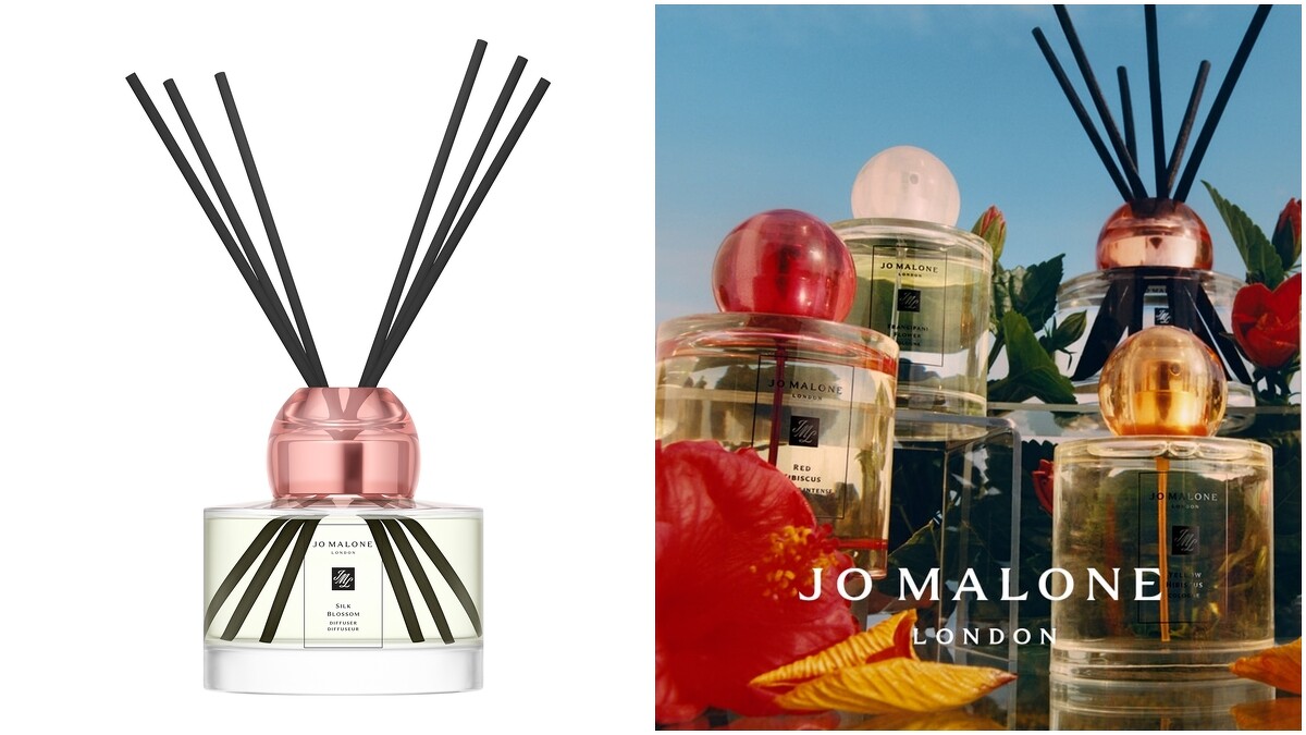 2021年3月Jo Malone London推出熱帶島嶼花園系列,包含有限定合歡花居家擴香(Silk Blossom Diffuser),清爽杏桃香帶著微微辛辣氣息,柔和粉嫩的天芥菜使香氣更為濃郁,在樹苔香調的烘托下更顯沉穩,讓今年Blossoms花園系列臻至完美,是專屬春天輕快的氣息。