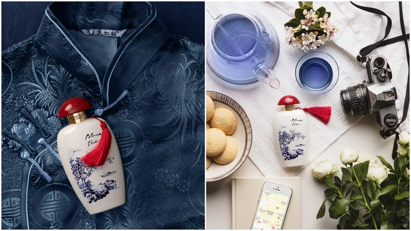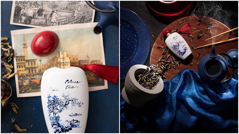 品牌香水玻璃取材於傳統威尼斯傳統風格和顏色,其中「品茶系列」以亞洲地區的香水和珍貴原料為發想,組成的核心是藍茶BlueChai,也就是大家常說的蝴蝶豌豆花,是歐洲人心中的東方香氛綺想。