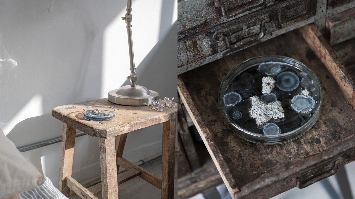 就像實驗室顯微鏡下的畫面一樣,氣味培養皿擁有絕美色彩暈染,每一個培養皿都是純手工製作,從培養皿內的顏色到暈染的花紋都是獨一無二的存在。