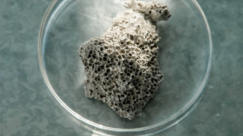 首創以春池玻璃研發的科技綠能建材「發泡玻璃」作為擴香石。發泡玻璃磚的原理是將面板玻璃研磨成粉末後混合水泥,再經過發泡的程序製成,使磚體內部形成蜂巢的孔狀結構。這些發泡後形成的孔洞,能阻絕熱源和聲音,是相當有市場潛力的環保無毒建材,同時也是擴香能力極佳的介質。