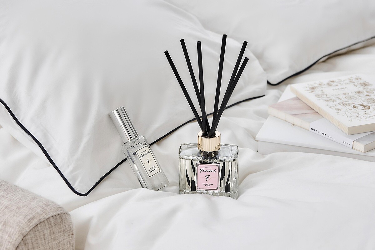 在房間擺上絲絨玫瑰與烏木擴香,裡面添加玫瑰精油,玫瑰具有紓壓、安神助眠,能讓私密的房間,散發一種精品飯店的高雅質感;可以依照不同心情,混搭小蒼蘭與英國梨香氛噴霧,清甜梨香混合優雅玫瑰香,多層次的香氛,讓您彷彿置身巴黎享受Metime異國風情!
