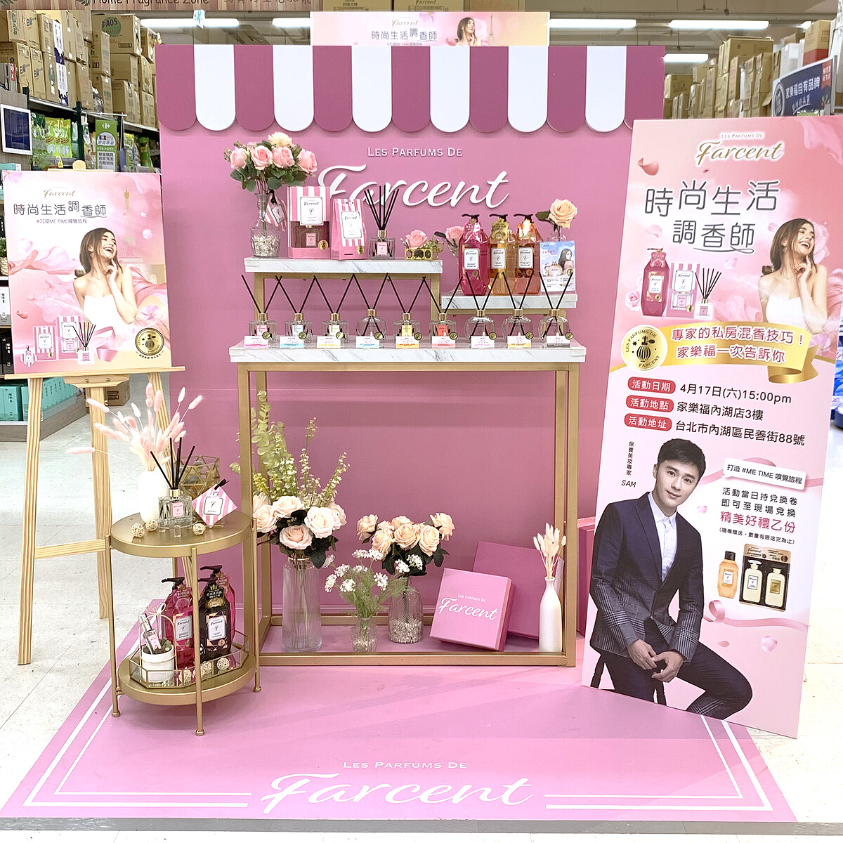 你跟M編一樣想體驗成為專業的調香師嗎?Farcent香水和家樂福內湖店聯手合作,規劃專櫃級的試香體驗專區及活動,可依個人香味喜好現場挑香,也可嘗試將兩種或多種香味混搭調香,當天活動還力邀美妝保養界專家SAM老師擔任一日店長,親自傳授ME TIME調香秘訣、如何製作專屬訂製香,更不藏私分享髮肌保養新觀念。現場凡參與體驗調香活動或消費滿額,即能獲得Farcent香水時尚絲巾乙條等精緻小禮,有趣好玩又能帶走夢幻好禮,這麼超值絕不容許錯過!