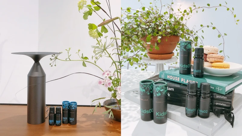 配方精油針對現代人的生活需求打造出思緒清晰、活力充沛兩款。另外甚至有為兒童設計的專屬三款精油。