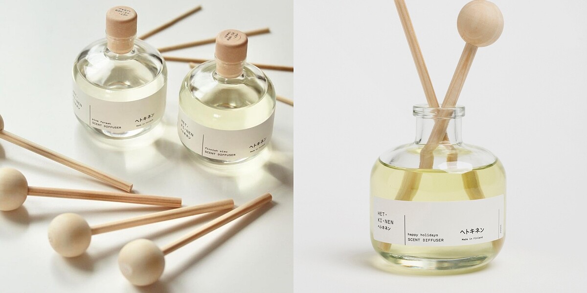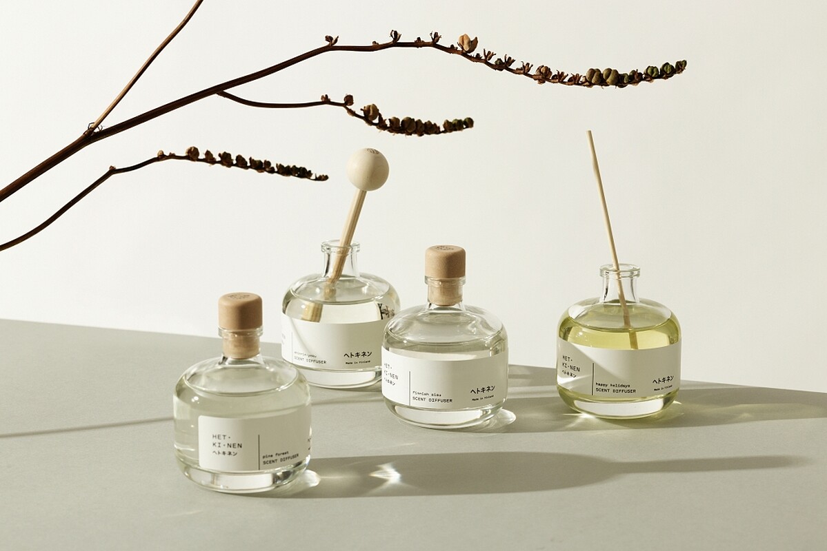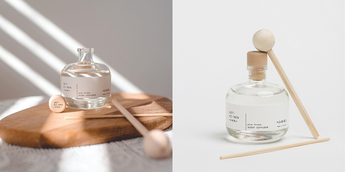 Hetkinen深受日式美學「侘寂」中啟發,因此將不對稱、不規則以及簡單低調等元素,結合質樸北歐風格,以芬蘭松木為材料打造出各式包裝,不僅看起來格外清新,也呼應了品牌主打的木質調香氣。