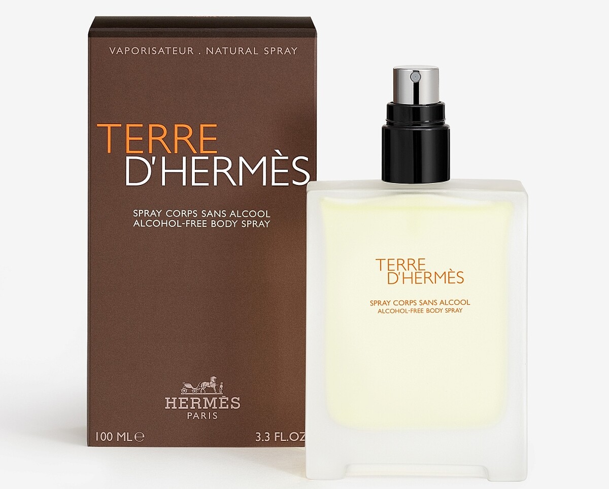 Hermès愛馬仕經典的大地男性淡香水,2021年推出身體噴霧,特別主打無酒精,庚能輕鬆提振心神、舒適享受。