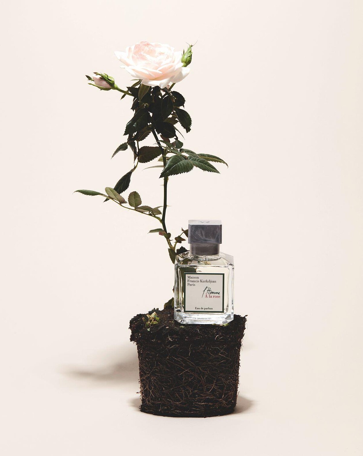 Francis Kurkdjian喜愛挑戰不同主題,決定以前所未見的方式運用於男性香水。玫瑰花香在木質與麝香調的味道環繞下,誘人且獨特,具有極高的擴散力。這款男香所使用的玫瑰花香,一點也不過時,不嬌媚、不壓迫,顯現輕盈且明亮的調性。