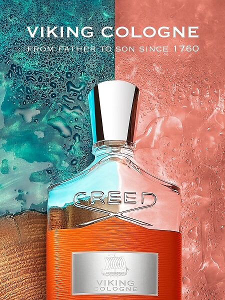 超過260年歷史的英國頂級香氛品牌CREED在2021年夏天,由第六、七代繼承者Olivier Creed及Erwin Creed父子攜手推出「Viking Cologne維京之海龍蘊」,是繼2017年維京之海後耗時三年以維京為題重新出擊。對比「維京之海」烈火般的豪氣辛辣,「維京之海龍蘊」重新擷取挪威峽灣的沁涼險峻,兩種截然不同的香味,卻都是對北歐極地冒險精神的歌頌。