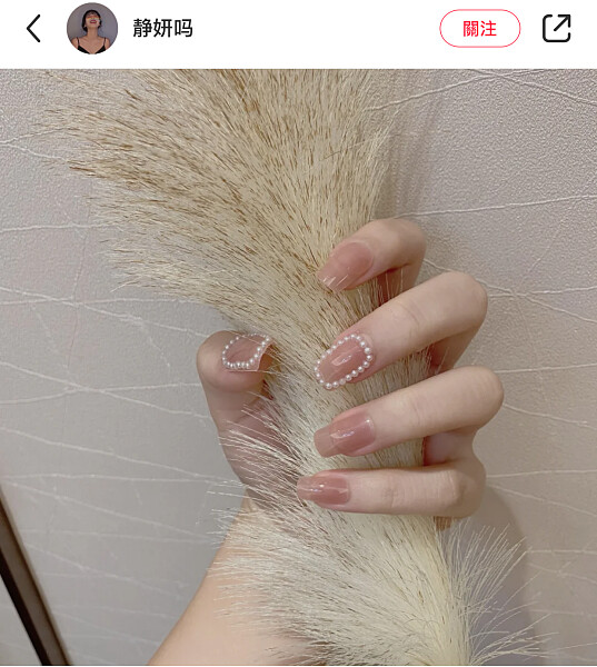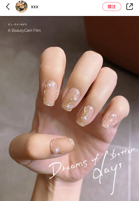 直接將一顆顆立體珍珠放在指甲上。簡約款多為一指一顆,稍微變化一下也可以三顆組成珍珠曲線。色系搭配則以裸色、粉色、奶茶色、白色等居多,百搭又耐看。