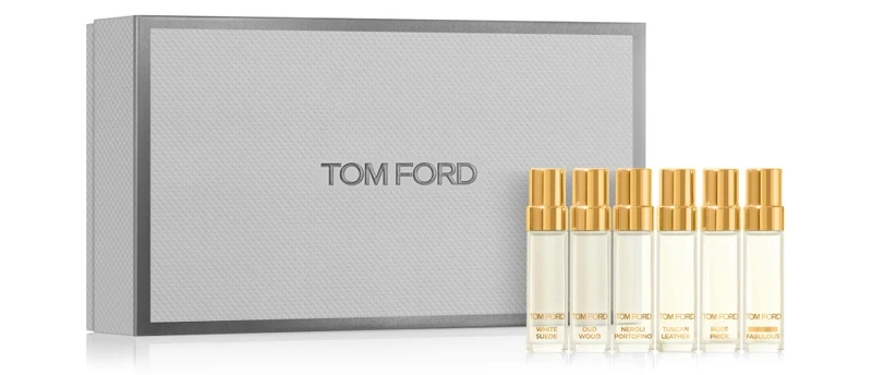 內含香水界王者「私人調香系列FABULOUS」、難以抗拒的玫瑰女王香「ROSE PRICK 禁忌玫瑰」、名人們的摯愛且全球銷售 NO.1「OUD WOOD神秘東方」、暖心無害經典代表「WHITE SUEDE白麝香」、最愛旅行香「NEROLI PORTOFINO暖陽橙花」以及好萊塢名人私下最愛「TUSCAN LEATHER托斯卡尼皮革」。