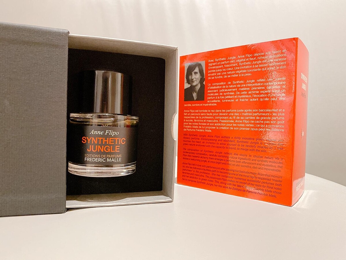 如果沒有成為調香師,Anne將會成為一位景觀設計師,她對植物與花卉的熱愛,以及在香水上的經驗與見識深深吸引 Frédéric Malle,兩個人在創作初始的討論中很快就有了這瓶全新香水 Synthetic Jungle 的共識:一款透過想像力創造出來的植物叢林,有幾個重要關鍵字隱身在這個概念中:綠色、現代、溫暖、茂密植物,以及----這個氣味必須與肌膚融合,自然而然成為人體的一部分,彷彿這個氣味天生屬於這個人!
