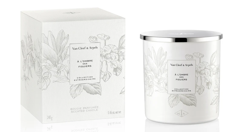 Van Cleef &Arpels梵克雅寶2009年以LES JARDINS頂級珠寶系列為靈感,推出珠寶花園頂級香氛系列(Collection Extraordinaire),開啟了頂級珠寶品牌與香氛絕美的篇章。今年Van Cleef &Arpels梵克雅寶更進一步開啟系列新篇章,推出富有詩意的香氛蠟燭。以含羞草香氣及無花果療癒嗅覺。