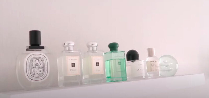 先從最新的開始說起,在張宰英Vlog中拍攝Room Tour的畫面其實就是朴栖含自己真正居住的家,和先前的Vlog一比較之下就可以知道diptyque譚道淡香水是最新出現的,以邁索爾檀木為主,更加入玫瑰木、雪松和柏樹、龍涎香等木質香氣,讓人想起森林中的廟宇,是渾厚卻通透的香氣,也有人說是聞到能沈澱心靈的香氣,也是diptyque經典的木質調香氛之一。