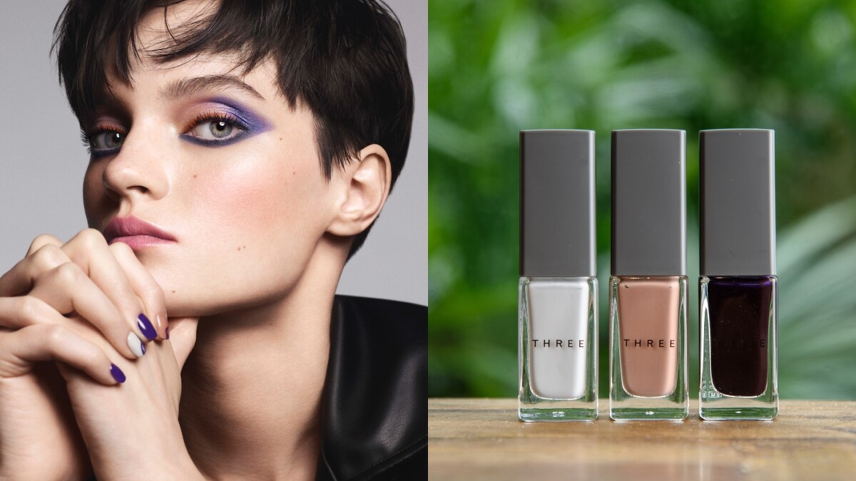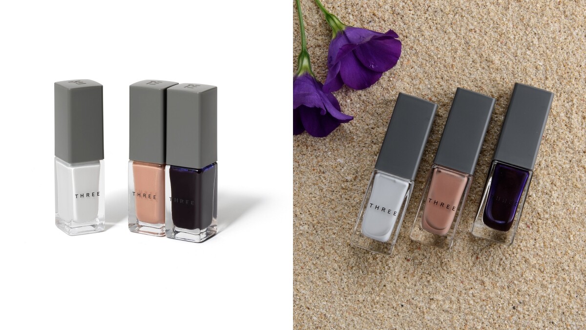 本季的3色使用Three擅長的灰色調,以絕佳的灰階比例展現心境,使指尖看起來更加柔美的彩度與透明感,展現出聆聽喜愛音樂時的高漲情緒或悅耳旋律的交疊。