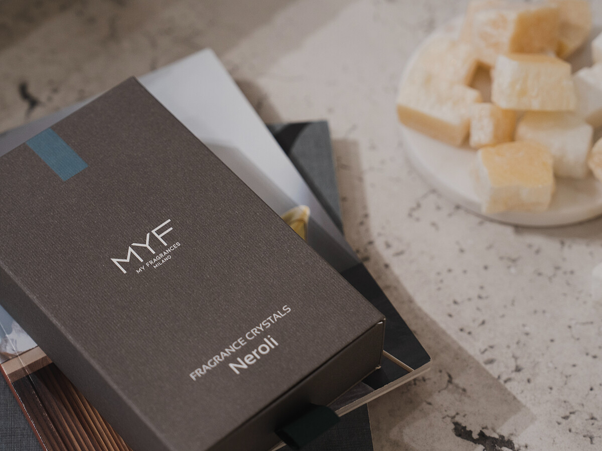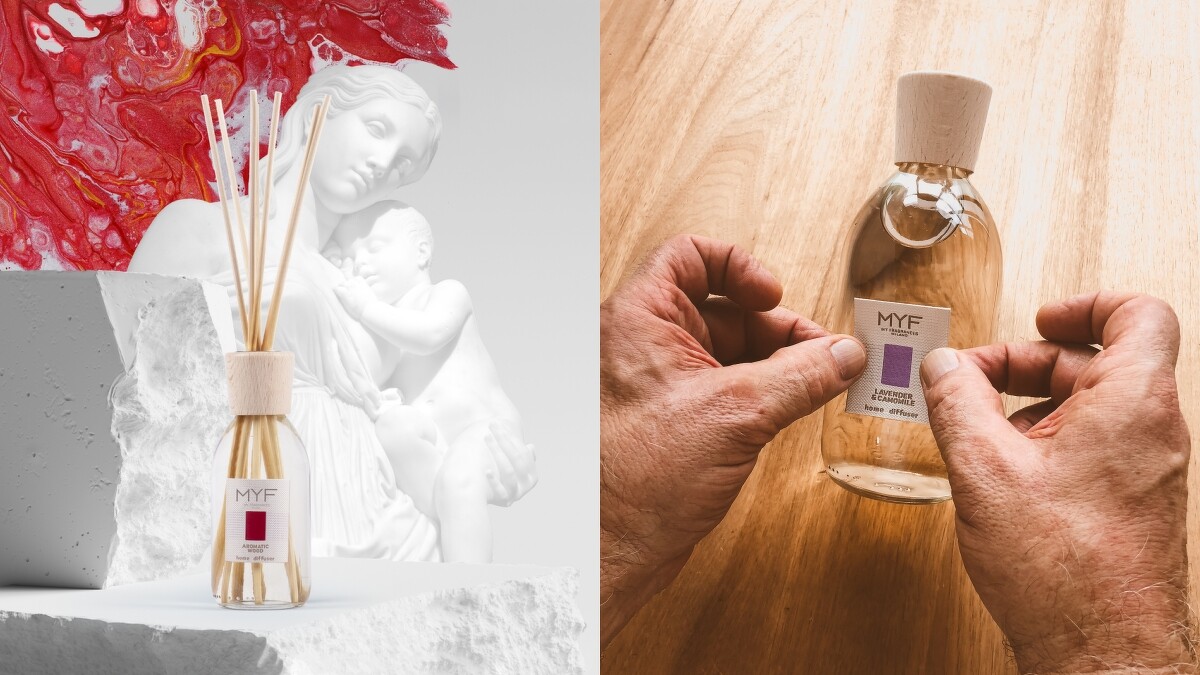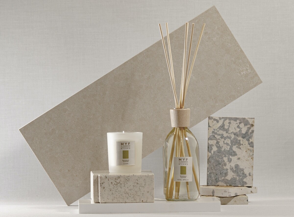香氛蠟燭、室內擴香、室內噴霧的香氛原料選用來自法國格拉斯,且使用植物酒精(甜菜根穀物萃取)結合義大利調香工藝;在瓶身包裝上,玻璃瓶身造型靈感源自2000年前的羅馬拱門與穹頂建築工藝,且每一款居家香氛產品皆依照不同的香氣類型搭配色彩互異的繡字織帶標籤,靈感來自於義大利時裝設計,由國際精品時裝品牌指定合作的布標工坊手工製作,展現品牌對於細節的極致堅持,也使空間香氛系列產品成為提升居家空間嗅覺與視覺質感的藝術擺件。