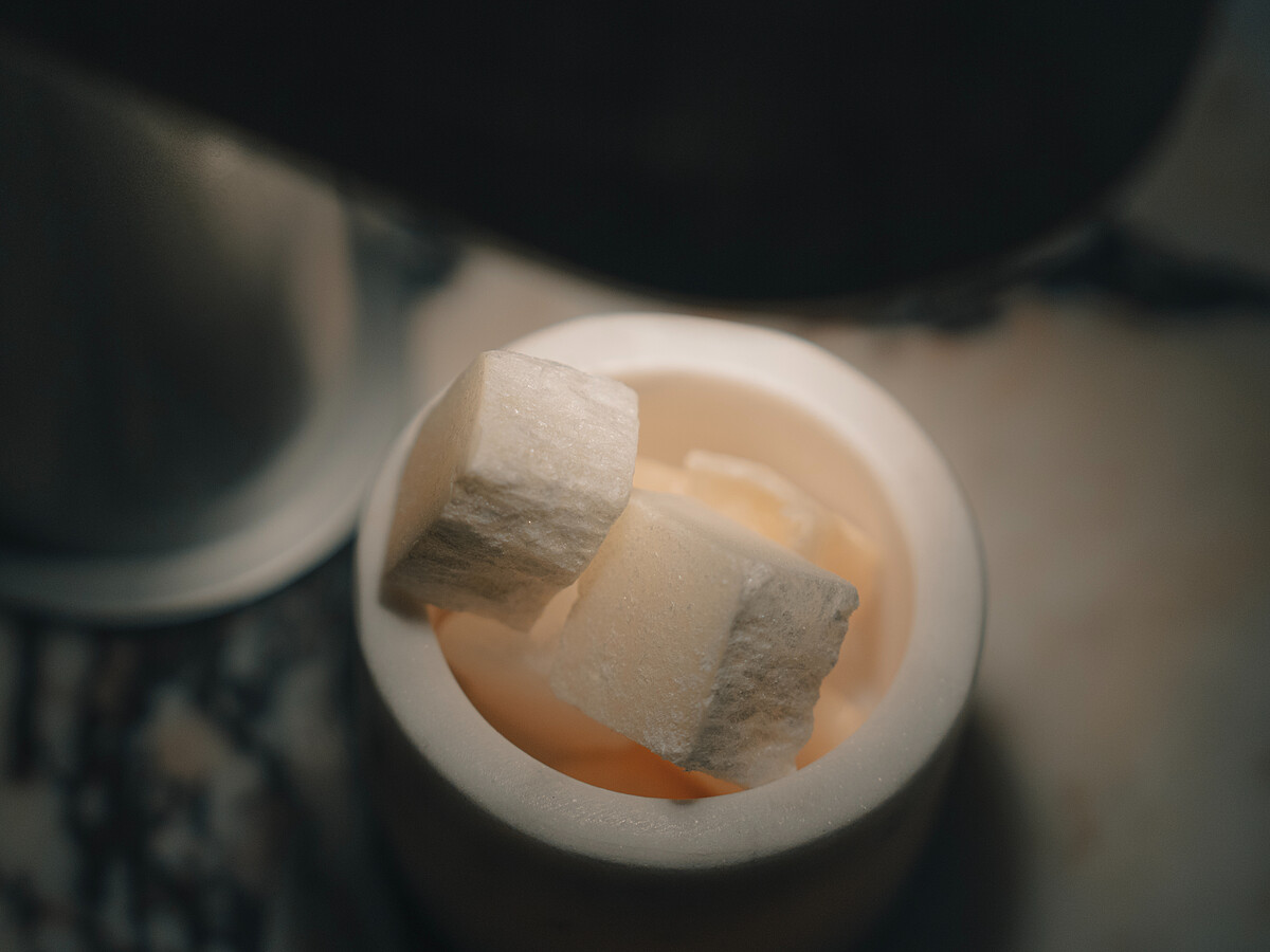 「可持續性」絕對是天然蠟塊的最佳優勢,如果以香氛蠟燭可燃燒50小時相比,同份量之天然香氛蠟塊可反覆加熱100小時,同時可重複使用,且蠟塊的芳香程度能自己控制,不受限空間坪數大小,都能透過蠟塊數量調整出最佳的香味濃度,蠟塊本身呈現如同天然水晶礦石的不規則塊狀,以植物基底、香精油、天然樹脂製成,不添加色素也不刻意雕琢於工整,呈現最原始狀態,減少身體與環境的多餘負擔。