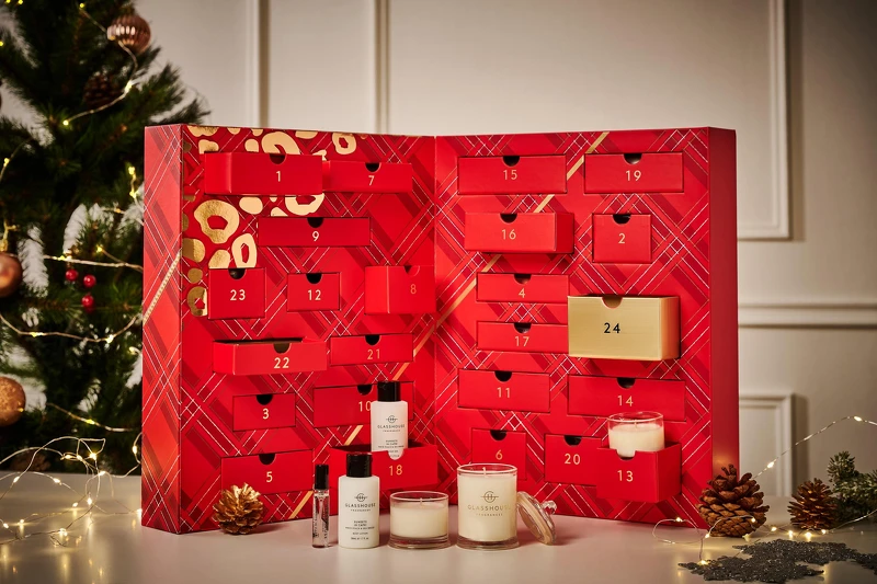 GLASSHOUSE今年年末特別獻上不一樣的精緻好禮,以紅底、燙金豹紋設計的「24天聖誕節日曆禮盒組」,將品牌的香氛、淡香水、沐浴露、身體護理等人氣商品一次蒐集,運用24個標註日期的小抽屜設計,讓你倒數迎接聖誕、每天體驗香氛儀式感!禮盒除了包含熱賣的護手霜、沐浴露及香氛蠟燭外,GLASSHOUSE更驚喜放入聖誕限定品-薑餅屋、聖誕節前夕夜香氛蠟燭,還有台灣尚未正式開賣的「卡普里島日落」全新香氛系列,想搶先體驗這一豪華禮盒就絕對要收!