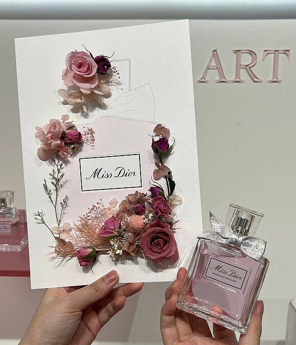 手作花卡活動:凡於活動現場購買MISS DIOR系列滿NT$6,000,即可憑兌換券體驗「MISS DIOR愛戀花卡」手作活動。