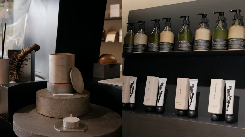 常態販售的品項包含香氛蠟燭、擴香、精油、線香、香塔,也有身體保養像是沐浴露、身體乳和護手霜,整體包裝線條簡約、並以低調的色澤為主,以金屬的色澤像是銀色、深灰色和深色的玻璃瓶身。目前一共有10個香氣,完整的運用在擴香上,其餘的香氛產品則不見得所有香氣都有。