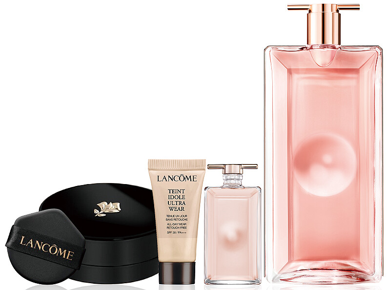 內容:IDOLE唯我香水50ml正產品、IDOLE唯我香水5ml、零粉感超持久粉底(#PO-01)5m、零粉感超持久彈力水粉霜(#PO-01)迷你旅行版。