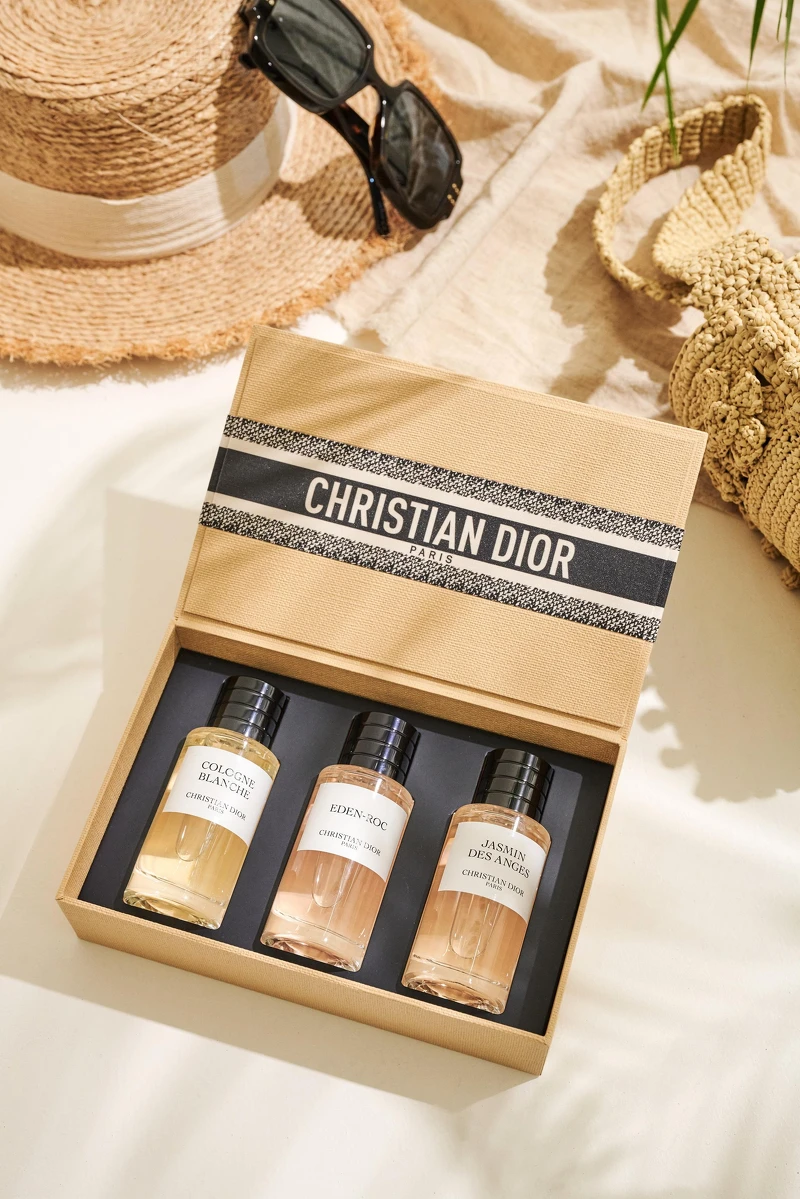 DIOR香氛世家獻給夏日的情歌,以花香調《晚夏茉莉》、海洋調《伊甸岩度假》與溫柔優雅的《晨光古龍》,這才完整體現南法的清新早晨、蔚藍海岸與格拉斯花田的極致美景,DIOR香氛世家《蔚藍限量香氛三件組》將這三款最能代表南法度假風情的香氛,收納進蔚藍假期獨有的海藍緞帶編織LOGO禮盒中,送禮或自用收藏,都能讓日常瞬間充滿異國度假的鬆弛感!